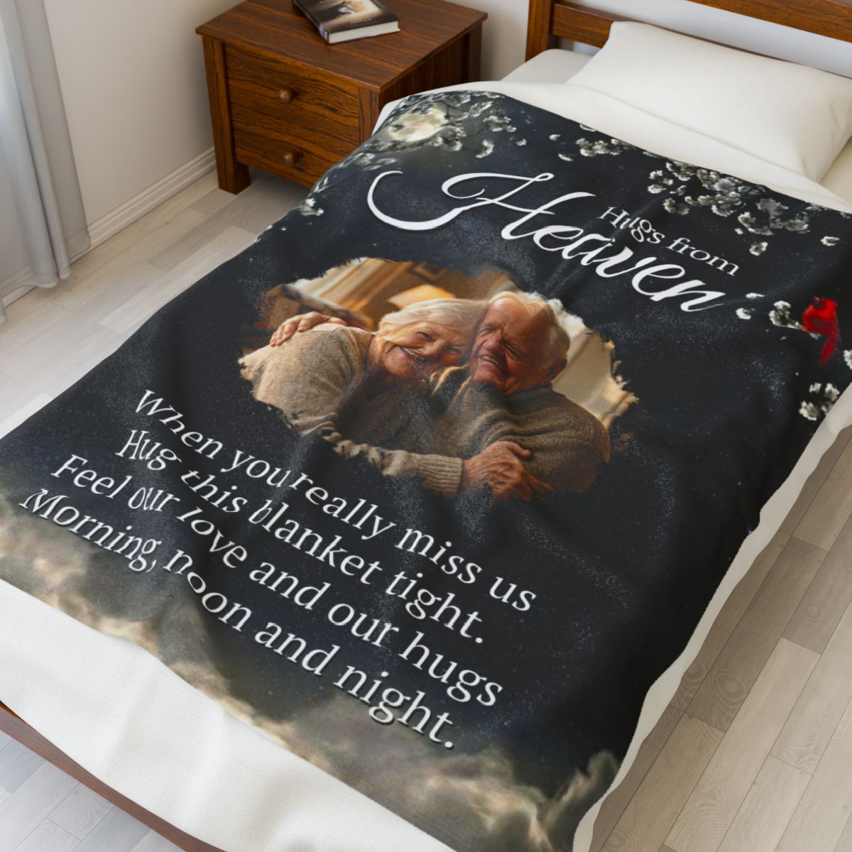 Honoring the memory of someone you love is never easy, but having something to hold onto can bring a gentle sense of comfort. This personalized memorial blanket is designed to feel like a hug from heaven — a soft, meaningful reminder of the warmth you shared and the love that will always remain.