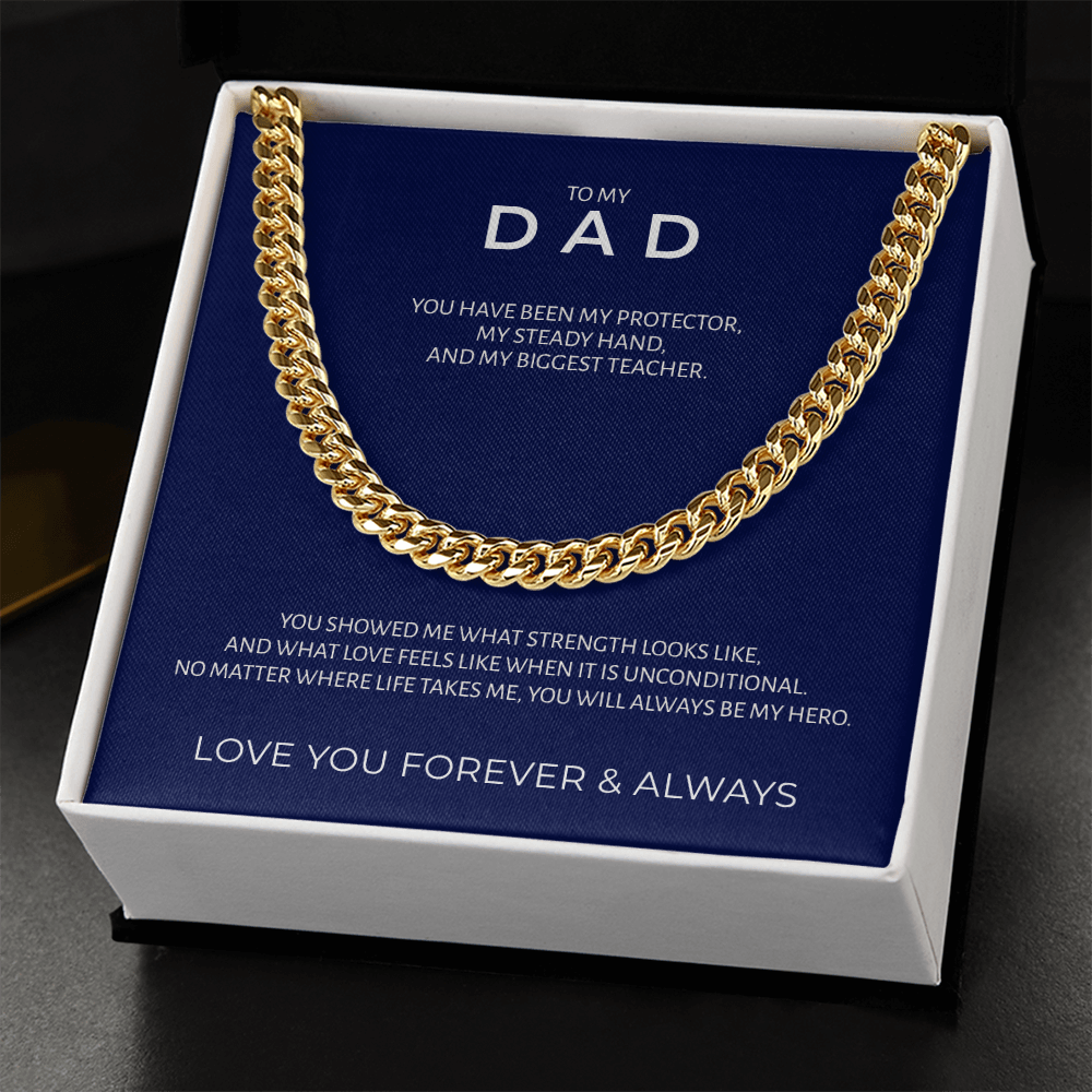 The Legacy Strength Chain honors the man whose love and courage shaped his daughter’s world. A timeless piece that reminds Dad he’ll always be her first hero.
